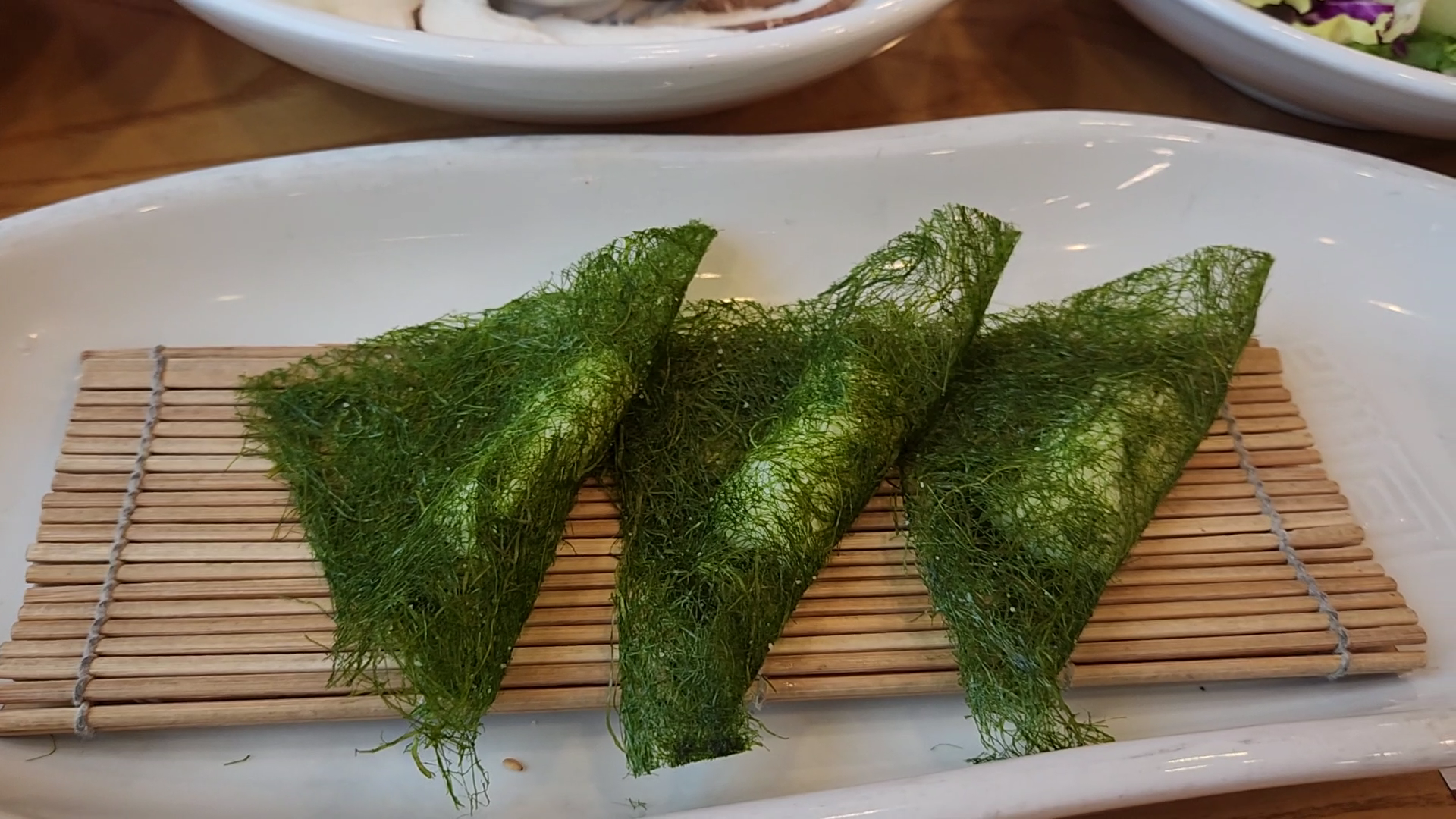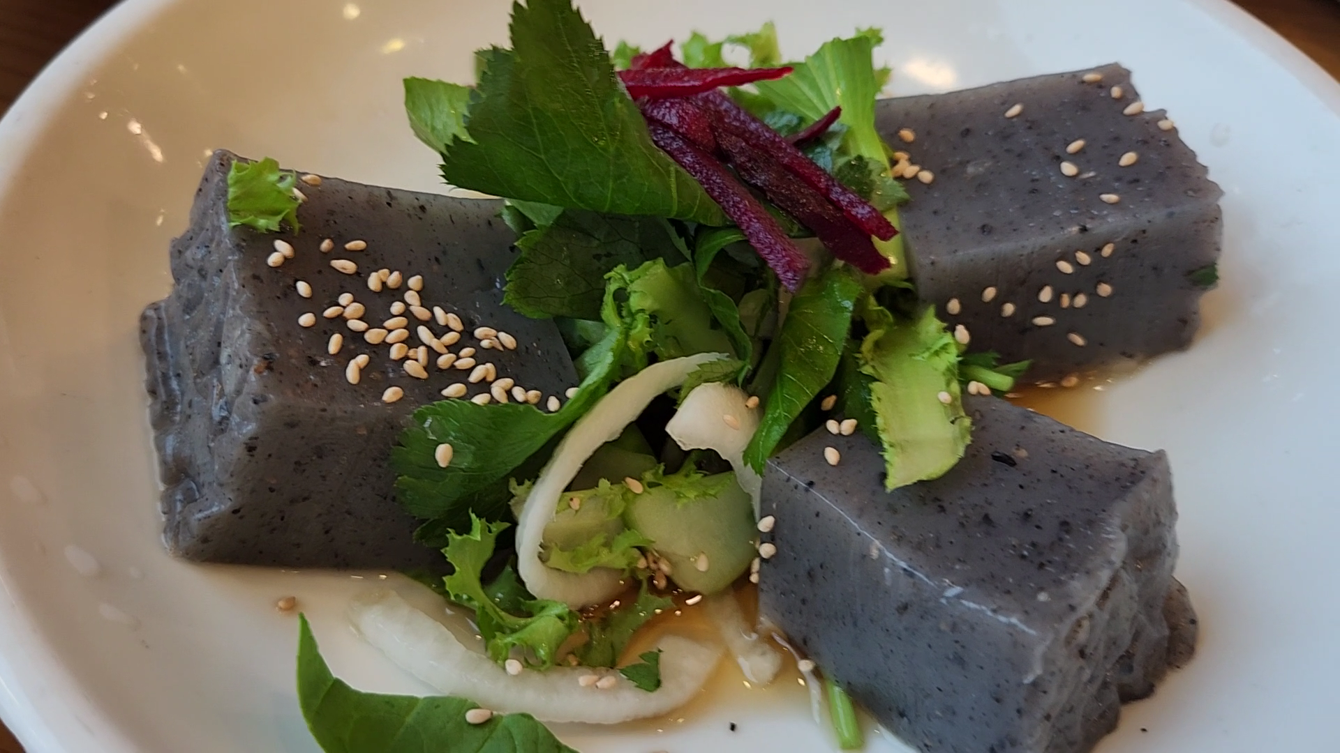 샐러드에 드레싱은 깨와 견과류를 갈아 넣고 곡물로 만든 천연의 드레싱 맛이었고 마요네즈나 버터와 같은 기름기와 당류를 가미하지 않은 것과 같은 맛이었다. 가장 맛있는 음식의 맛은 아무 맛도 나지 않는 것이라는 생각을 다시 떠올리게 하였다.