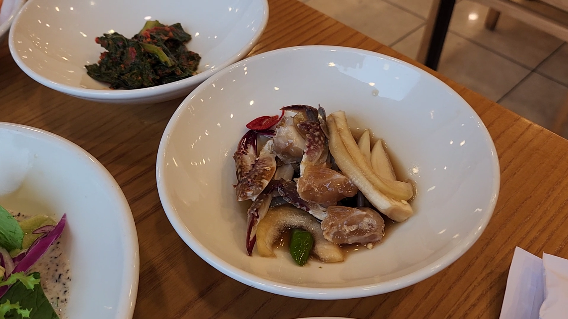 자극적인 재료와 양념으로 첫맛을 강렬하게 줄 수 있으나 맛있는 음식을 배불리 먹고도 또다시 음식이 생각나는 맛이야 말로 그 음식을 다치 찾게 하는 음식이다. 마치 평양냉면이 그런 음식의 전형이라고 할 수 있다. 대나무 통에 맛난 찹쌀밥인 대통밥이나 간장게장, 김치, 갓김치 등 반찬들도 어느 한 가지도 불필요하지 않은 모든 반찬조차도 그런 컨셉에 잘 어울리는 구성이었다. 다시 가보싶다는 생각이 드는 곳이다.